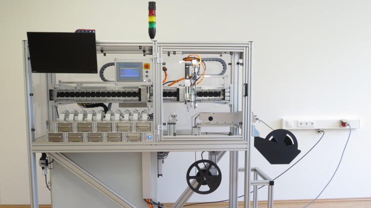 Electric test and sorting machine for transistors to further process from box or from blister tape.Machine description:•Siemens S7 PLC touch panel•Handling system is driven by an electric drive with axes in movement direction X, Z, and U.•Sorting flap pneumatically controlled•10 sorting boxes (can be optionally adjusted)•Transistors feeding via blister tape through feeder•Test cavity for transistors•Test equipment has to be provided by the customer; the integration into the production line will be done by Weresch Automat•Carrier tape can be wound up for reuse or shredded for disposal•Output of the system: approx. 1600 parts per hour•Operation voltage: 230V/50Hz (standard), other voltages are available on demand•Air supply: 6 bar by pneumatic demand•ESD version